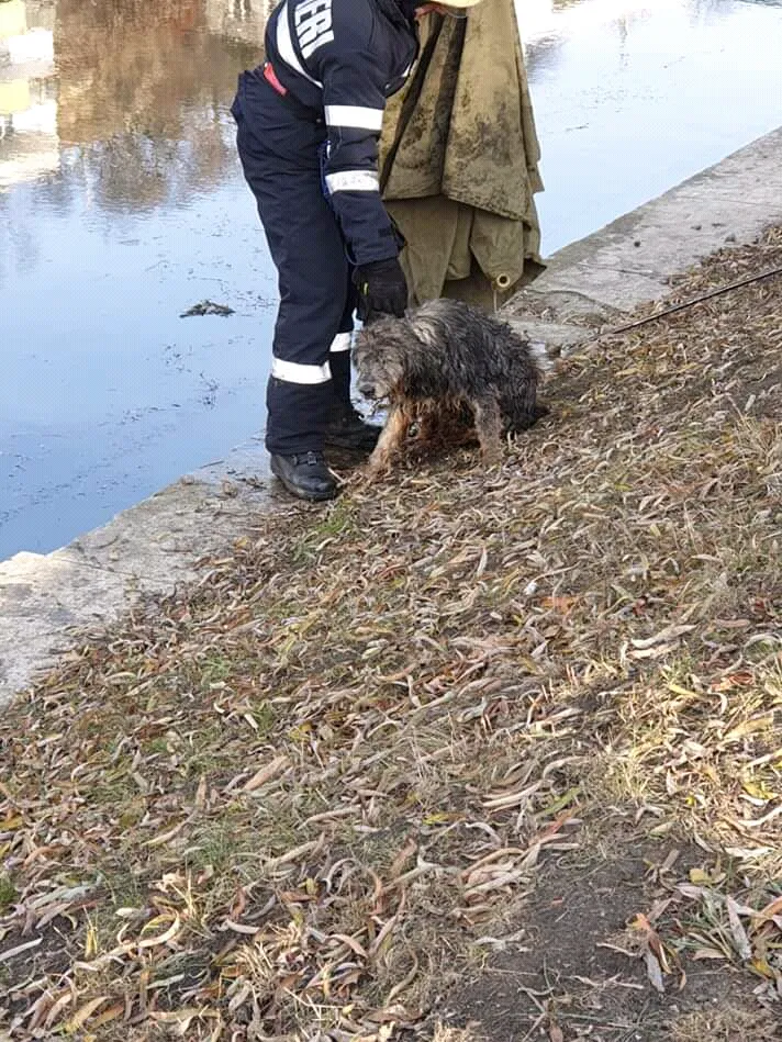 Câine salvat din Someș de pompierii clujeni. Cum a decurs intervenția - FOTO