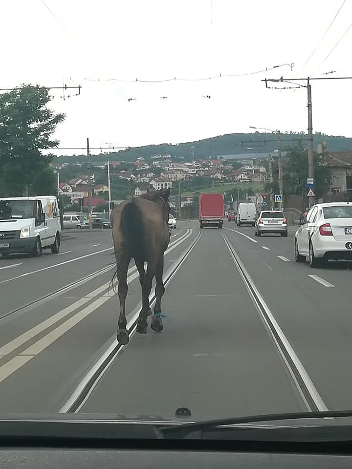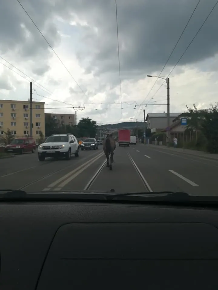 Clujenii au fotografiat calul în trafic încă de pe Bulevardul Muncii.