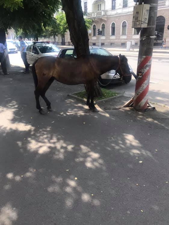 Calul ar aparține romilor de pe Bulevardul Muncii. Animalul avea la picior o sfoară cu care a fost legat pe un câmp. Cel mai probabil acesta a scăpat și de pe Bulevardul Muncii a luat-o la galop spre centrul orașului.