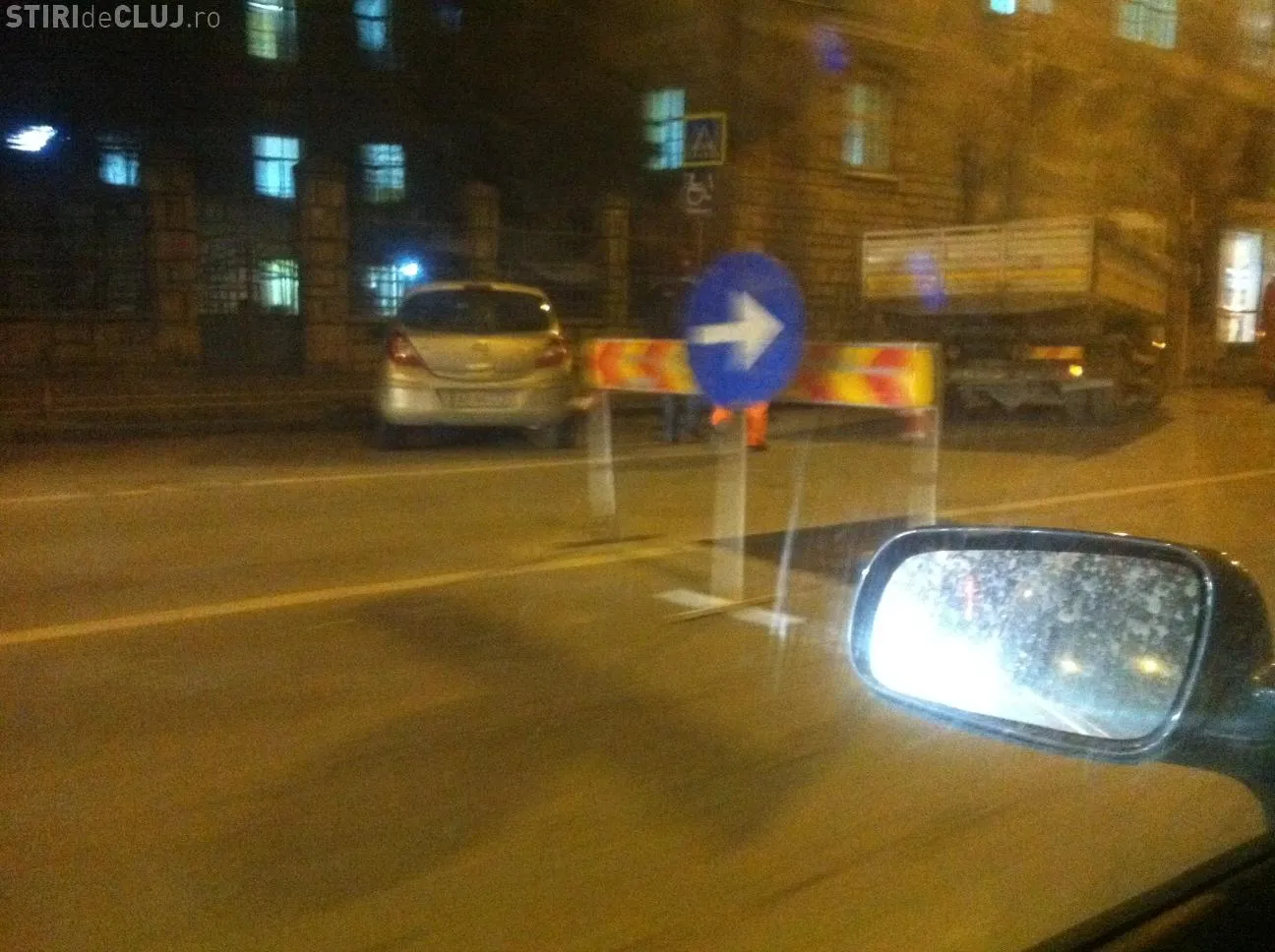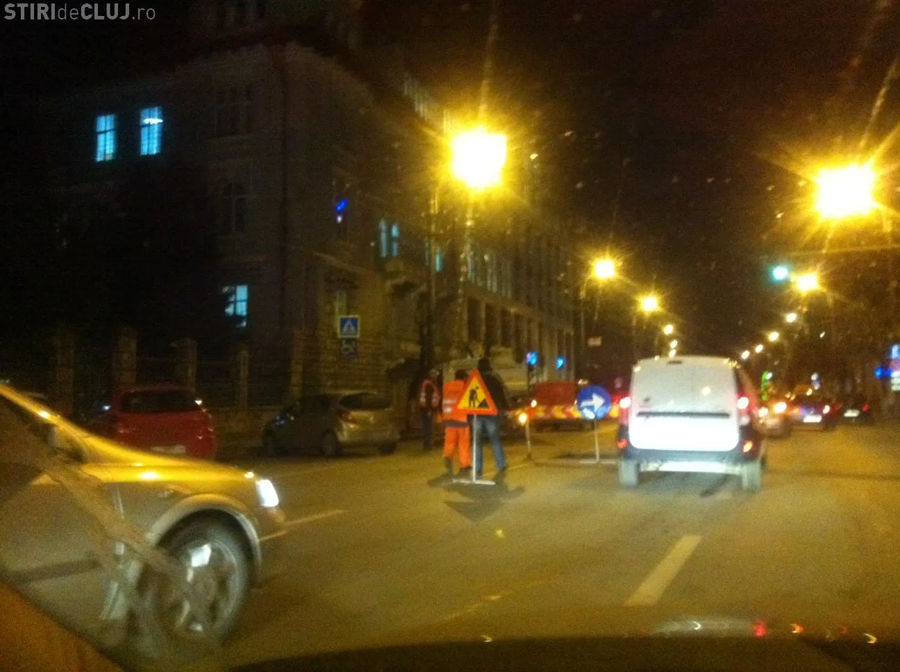 Calea Dorobaților a fost blocată de o echipă de muncitori care au lucrat la o gură de canal.