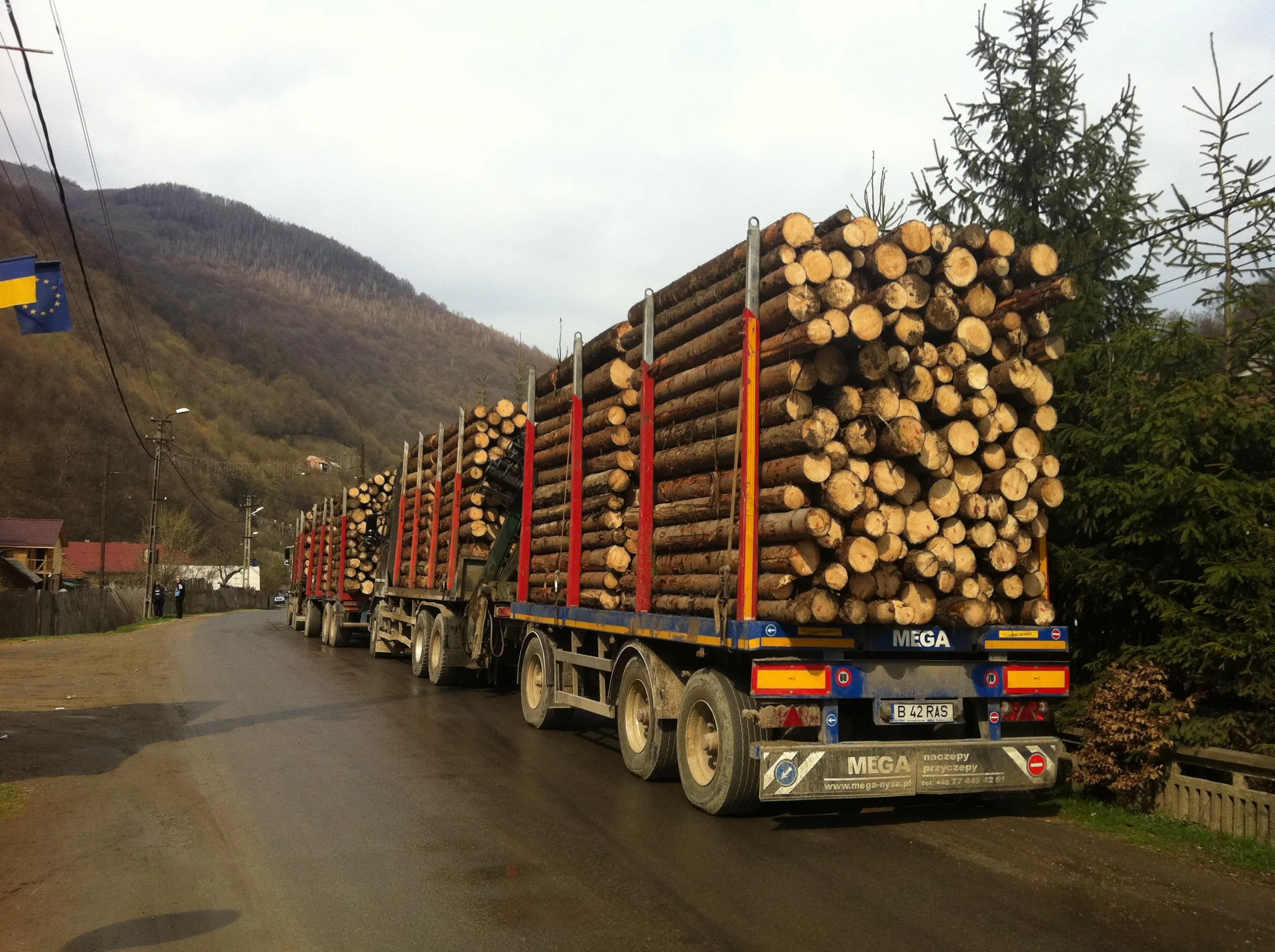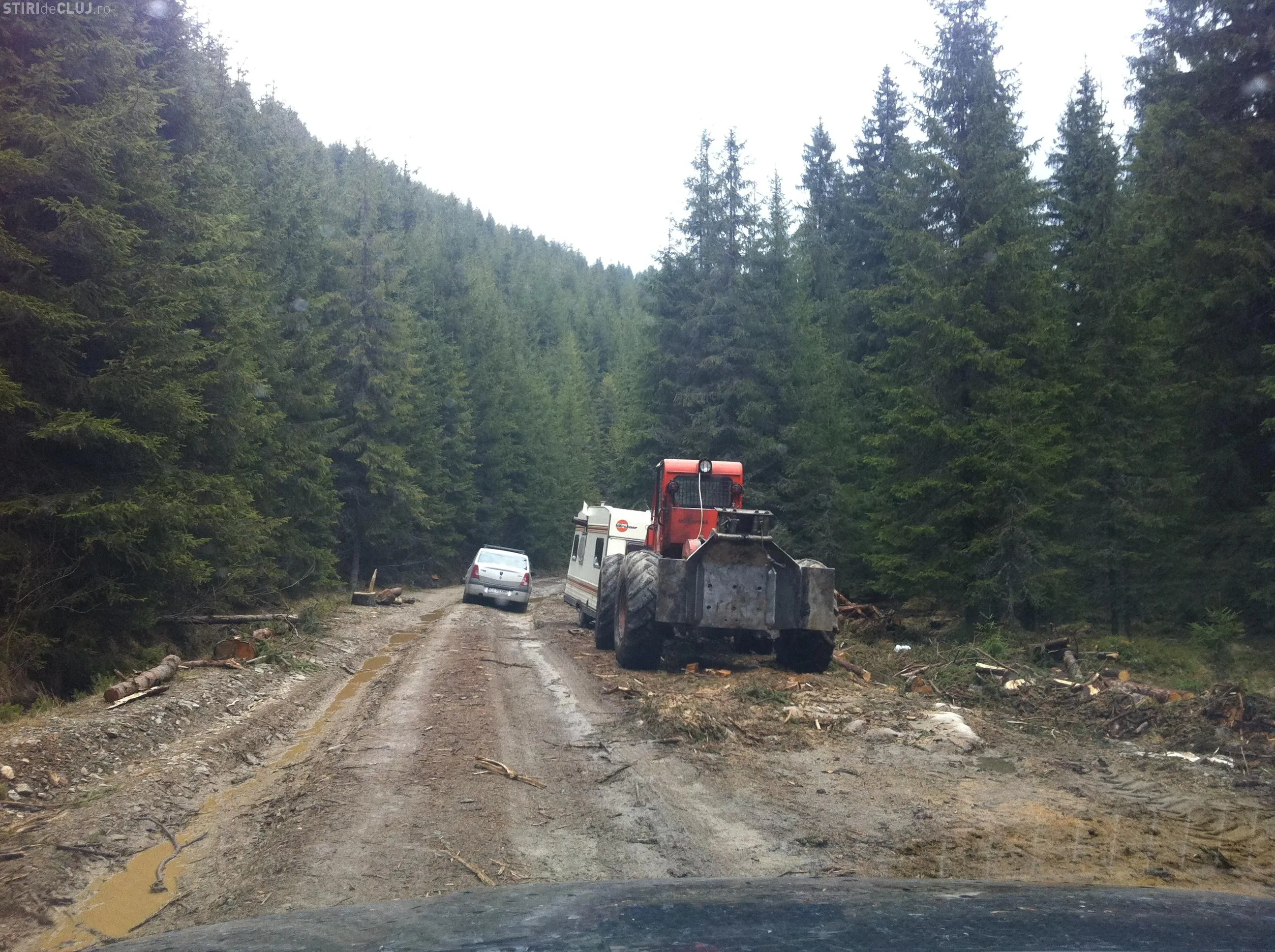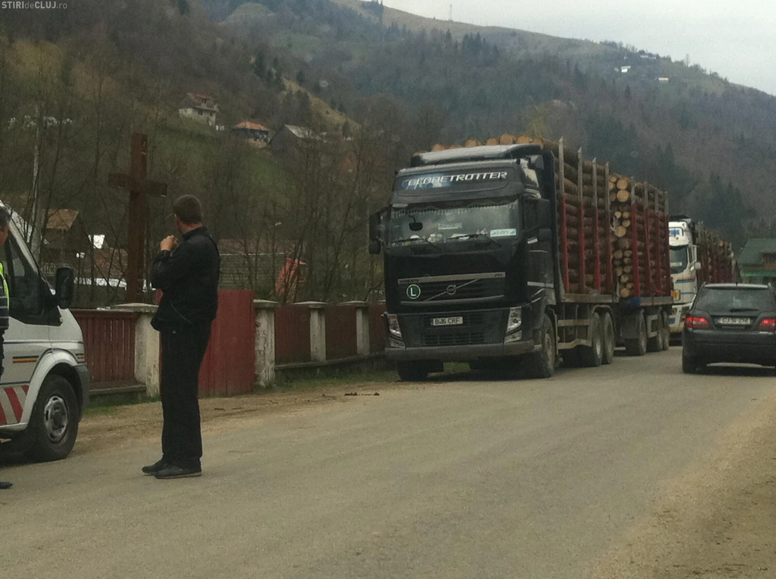 "Camioanele astea au fost încărcate azi-noapte, pe furiş, în pădure şi urmau să plece. Cel mai probabil direct în Ungaria. Camioanele sunt ale unui pădurar care l-a denunţat pe directorul de la Direcţia Silvică Cluj, Traian Mariş", ne-a povestit un localnic.