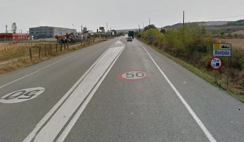 Un camion a intrat în șanț pe DN 1C, în zona Jucu de Mijloc.
