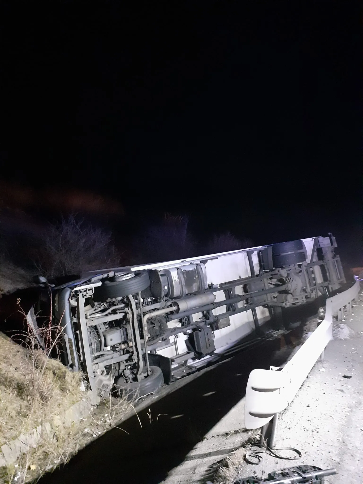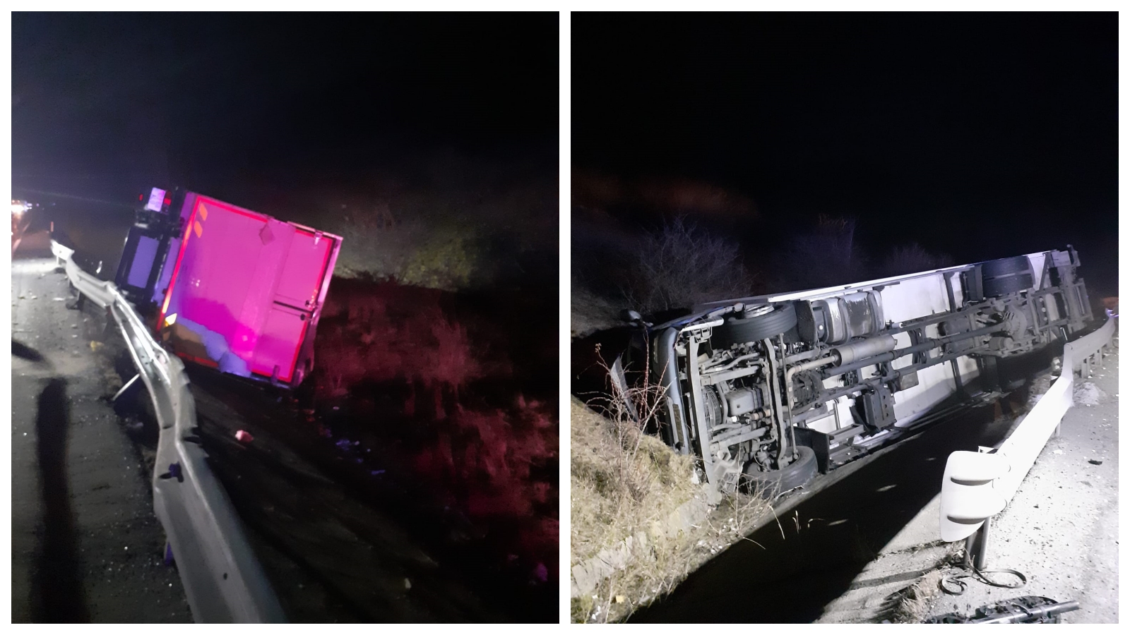 ”Echipajele noastre au găsit un autocamion răsturnat în afara părții carosabile, însă din fericire nu au existat persoane încarcerate. Șoferul autocamionului este evaluat de către paramedicii SMURD, urmând a fi stabilit dacă va fi transportat la spital”, precizează ISU Cluj.
