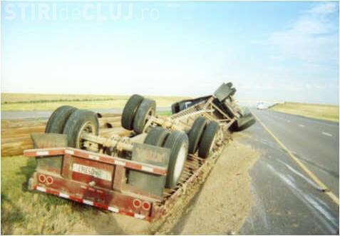Camion răsturnat pe centura Vâlcele-Apahida. Traficul este blocat