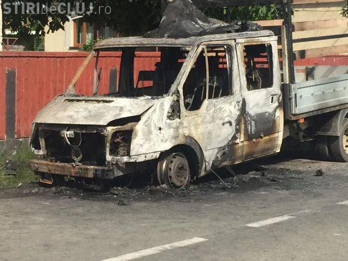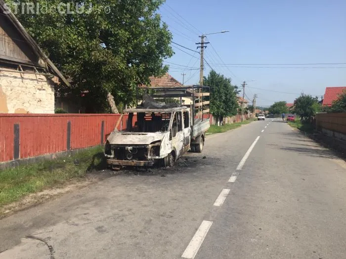 Camionetă incendiată în Apahida de persoane necunoscute - FOTO
