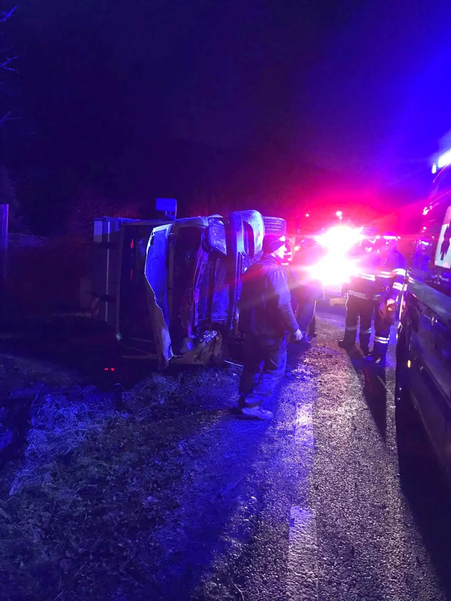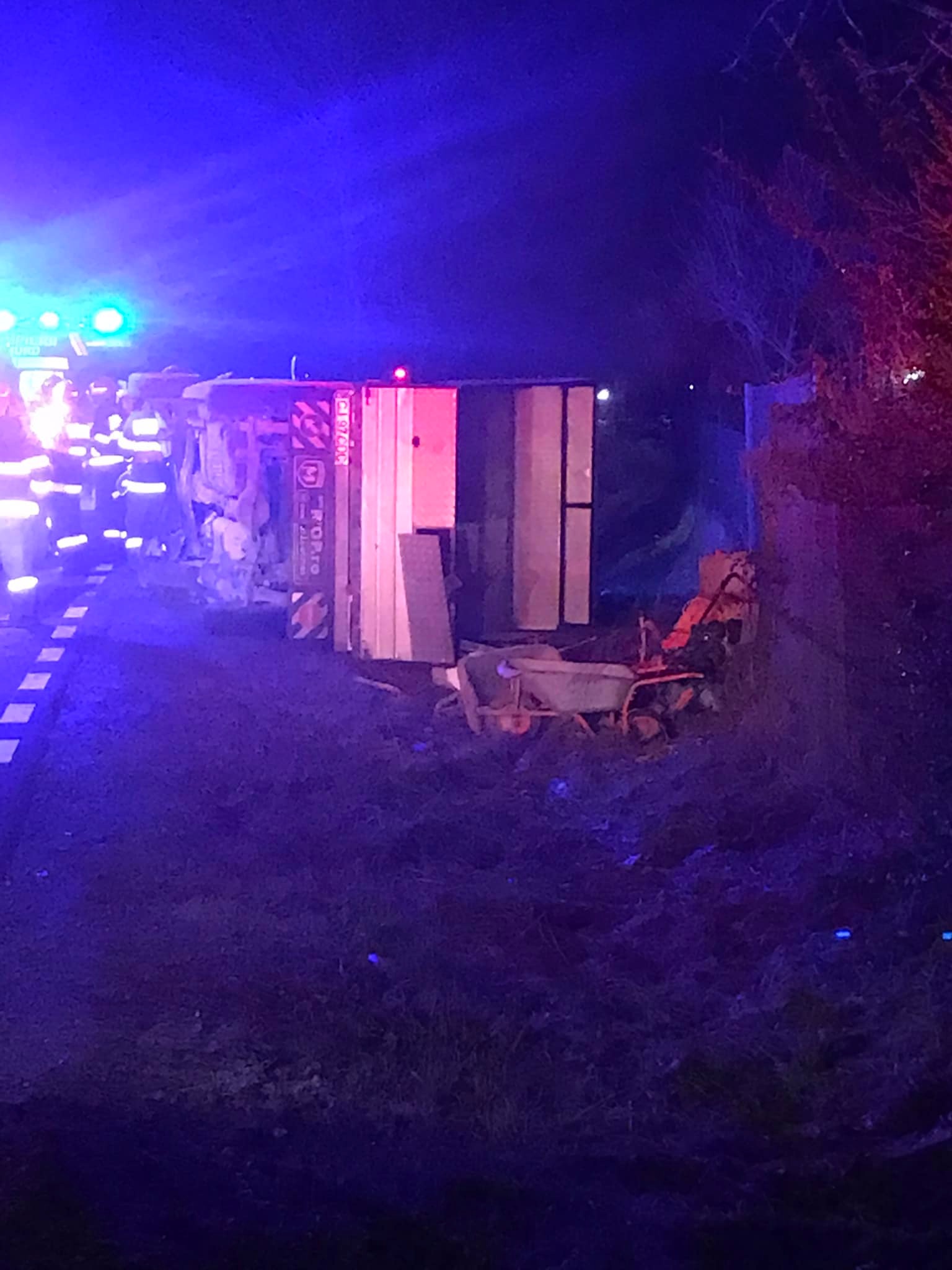 O camionetă încărcată cu echipamente folosite în construcții s-a răsturnat miercuri după-amiaza, pe strada Sfântul Ioan.