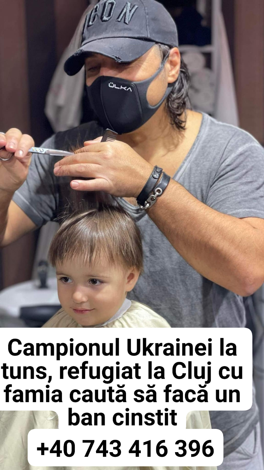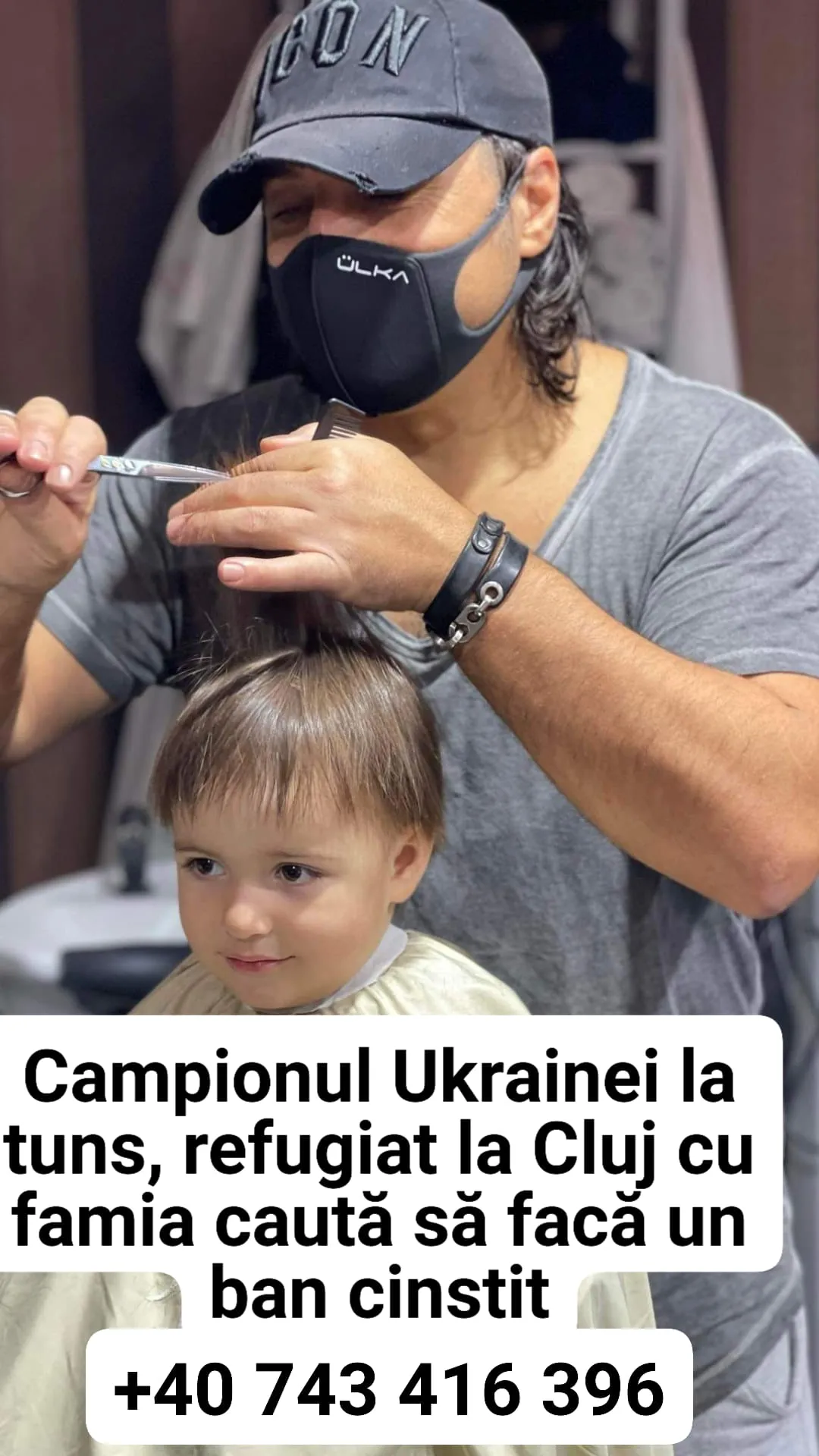 Campionul Ucrainei la tuns este refugiat la Cluj, împreună cu familia, și își caută de lucru.
