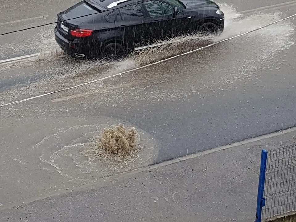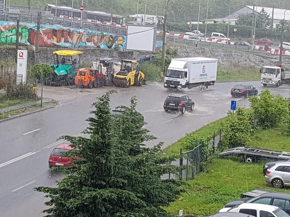 Clujul este sub cod portocaliu de ploi între orele 13.35 - 14.30. Meteorologii estimează că au căzut între 35...40 l/mp în timpul furtunii. Canalizarea nu a mai făcut față și a refulat, așa cum se întâmplă la orice furtună serioasă.