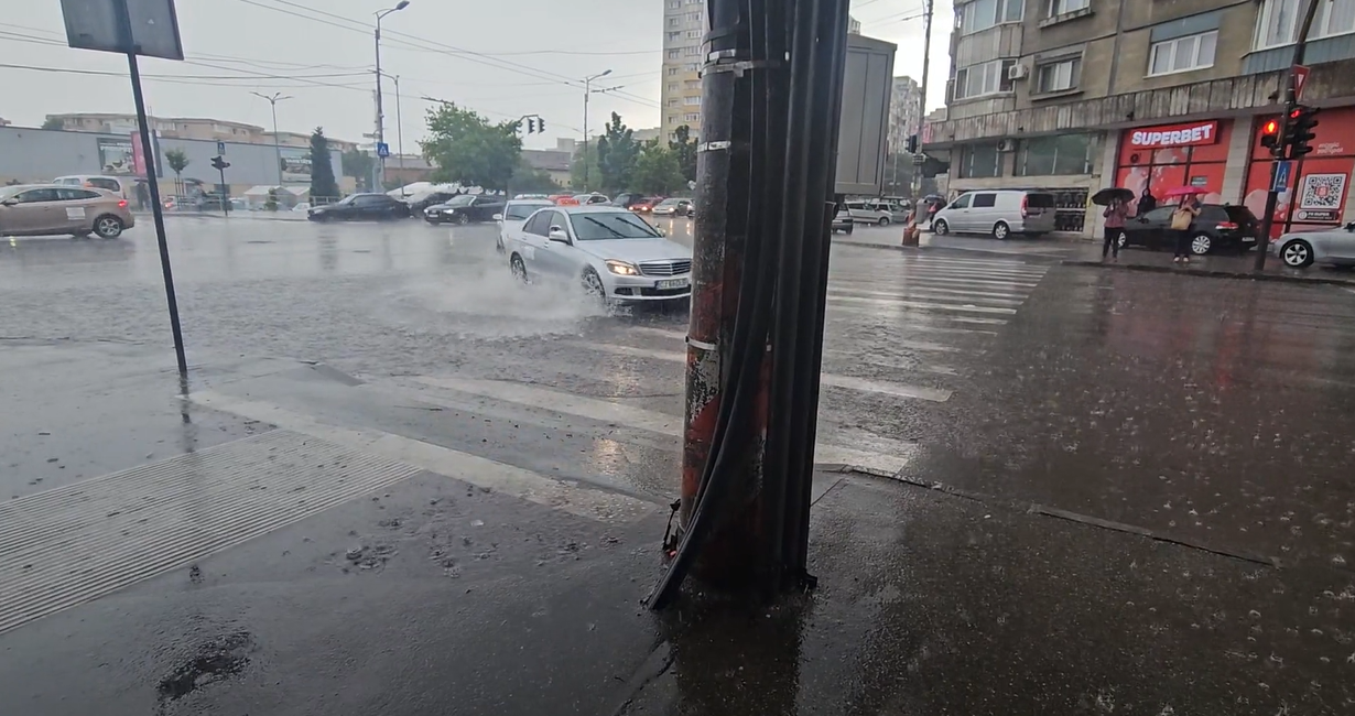 Canalizarea Clujului, în colaps, după 15 minute de ploaie: apa până la glezne, guri de canal ridicate încât nu intră apa în ele- VIDEO