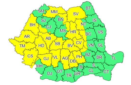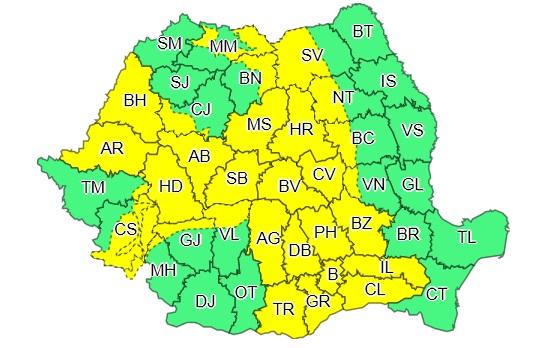 În intervalul menționat, în zonele de munte, precum și în Crișana, Banat, jumătatea de nord a Munteniei și a Olteniei, local în Transilvania și nordul Moldovei vor fi perioade cu instabilitate atmosferică accentuată. Se vor semnala averse torențiale, frecvente descărcări electrice, intensificări ale vântului, vijelii și grindină. Cantitățile de apă vor depăși 25 l/mp și pe arii restrânse 40...50 l/mp.
