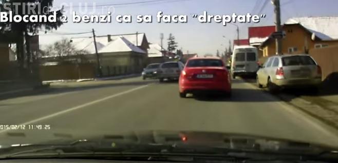 Autospeciala de Poliție circula cu viteza de 50 km/h, iar șoferul unui autoturism Skoda nu a mai suportat să stea în coloană și a devansat-o chiar pe o trecere de pietoni.
