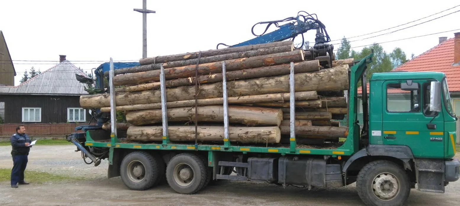 Captură de lemn la Cluj. Polițiștii au confiscat un camion plin cu lemne FOTO
