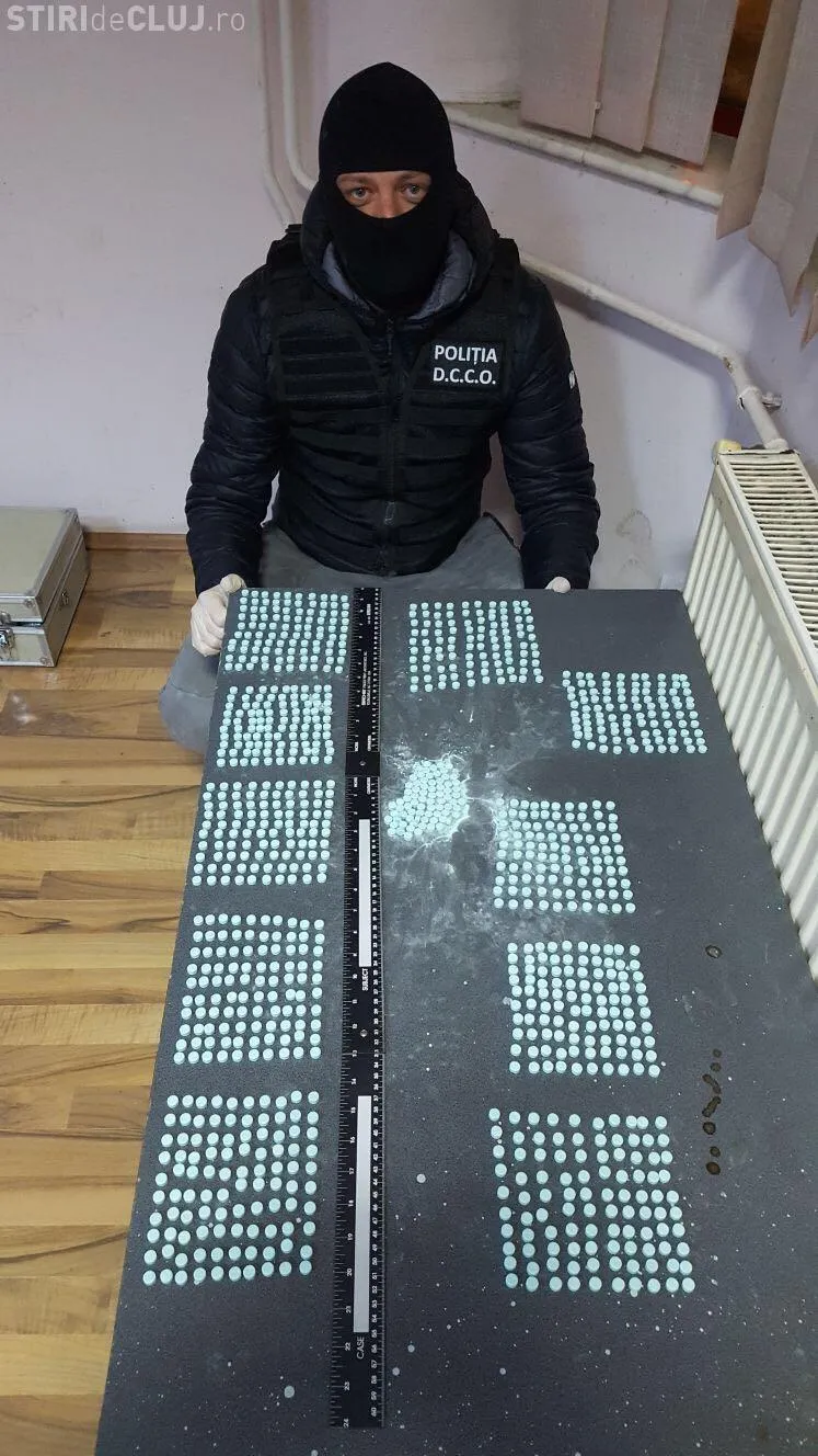 În urma controlului efectuat asupra camionului a fost găsit un colet în care se aflau 1074 pastile de culoare turcoaz conţinând MDMA, cunoscute şi sub denumirea de ecstazy, destinate pieţei din judeţele Cluj şi Bistriţa-Năsăud.