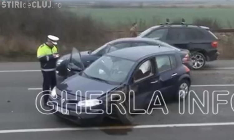 Carambol la intrare în Gherla! Cinci mașini s-au tamponat în lanț - VIDEO