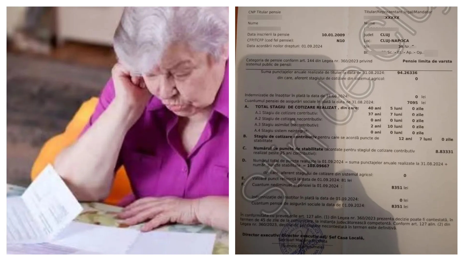 Femeia a explicat pentru Știri de Cluj că după revizuire, de la suma de 7873 lei, pensia i-a fost crescută la 8351 lei.