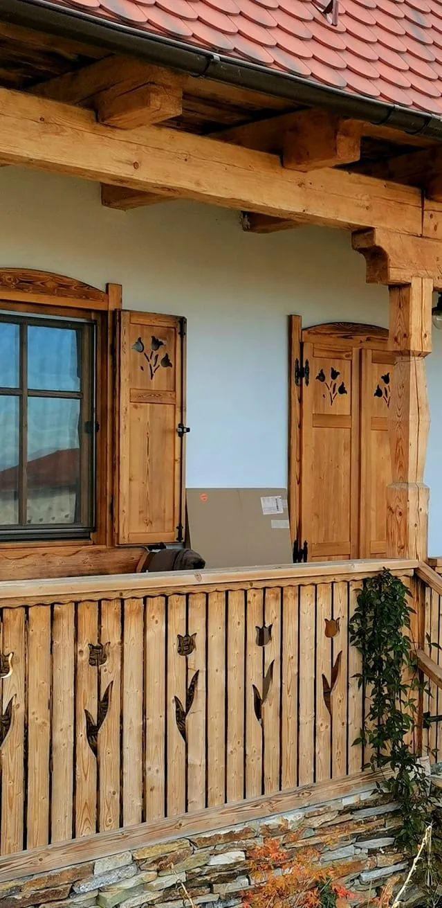 Internauții au aprecizat ”târnațul” (prispa de la intrare din casă) dar și lalelele din structura de lemn.