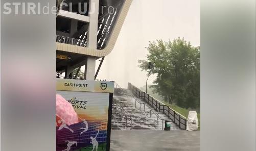 ”Cascadă” pe scările de la Cluj Arena, în urma ploilor VIDEO
