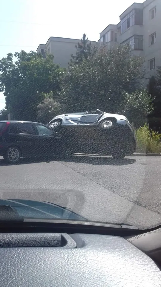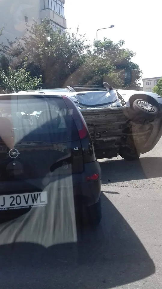 Cascadorie pe strada Dunării! A luat pe sus un autoturism - FOTO