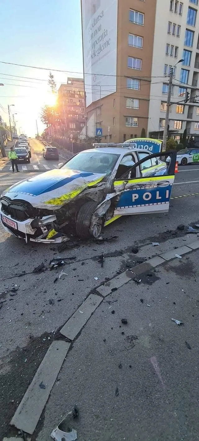 Cât costă asigurarea casco la BMW -ul Poliției Rutiere Cluj avariat în accidentul de pe strada Teodor Mihali - FOTO