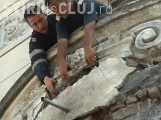 Imediat dupa producerea accidentului, pompierii au trecut la indepartarea bucatilor de tencuiala care stateau sa cad, din zona balcoanelor de la etajul 2 si 3. Un pompier a "demolat" un balcon in cateva minute, demonstrand cat de usor se poate face acest lucru si cat de degradata este cladirea.