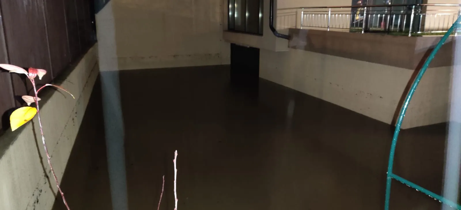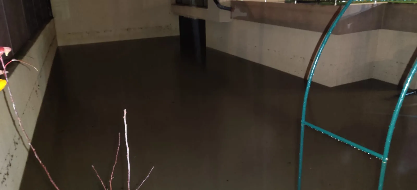 Cele mai însemnate pagube au fost înregistrate în parcajul subteran, în care au fost inundate în totalitate cinci autoturisme. Au mai fost distruse bunuri din trei case de locuit, în care apa a avut adâncimea de circa 15 cm.