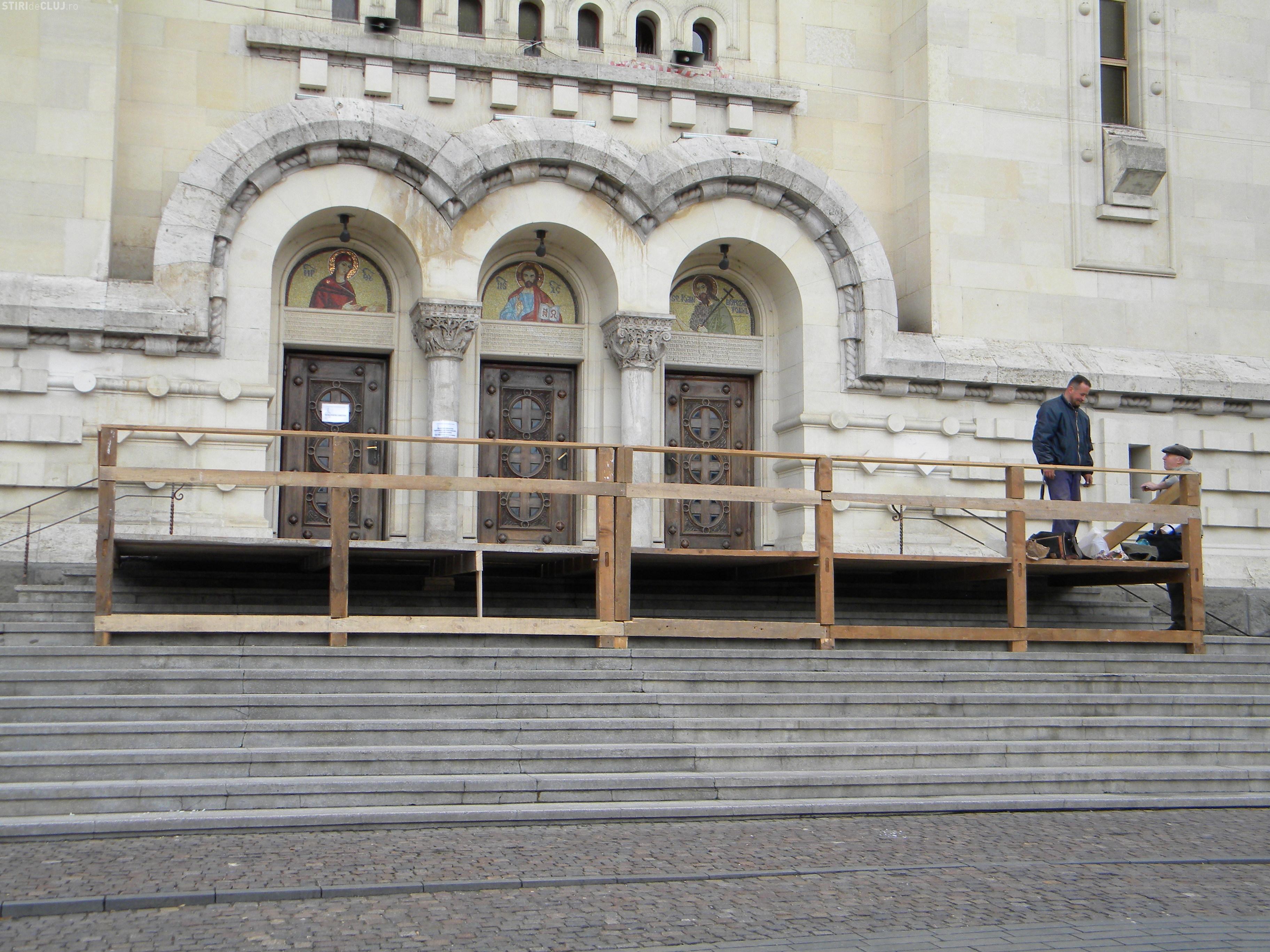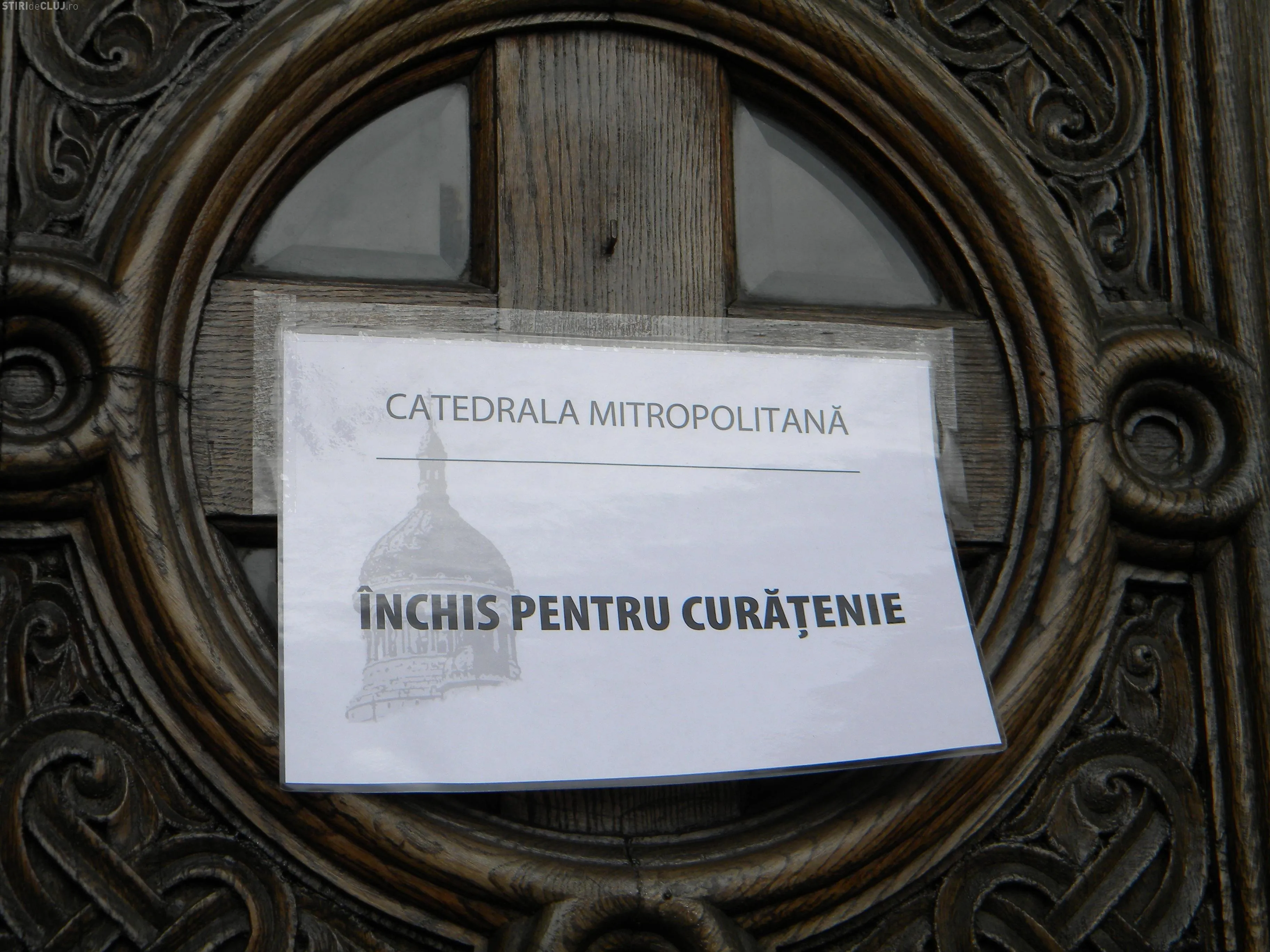 "Catedrala Miotropolitana - Inchis pentru curatenie" este afisul postat pe usile de la intrarea in Catedrala.
