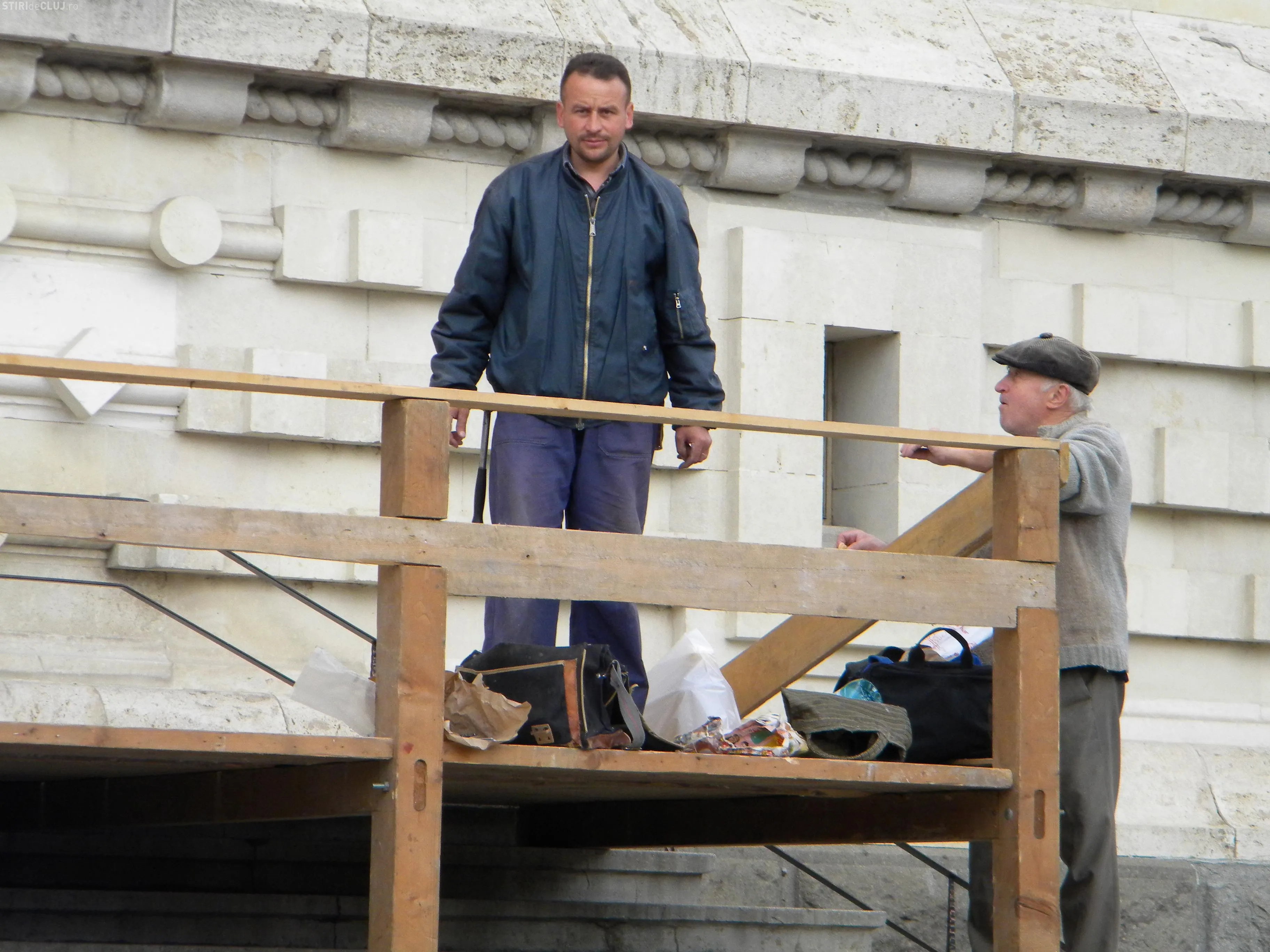 Pentru ca totul sa fie pregatit muncitorii monteaza si scena pe care va fi tinuta slujba din aceasta seara.