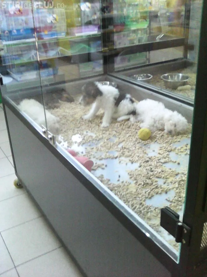 Mai mulți căței sunt chinuiți într-un petshop din Cluj-Napoca, iar iubitorii de animale se întreabă ce se poate face.