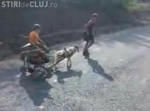 Doi copii au fost filmați în Cojocna în timp ce chinuiau cu câine. Animalul a fost înhămat la un carucior în care se aflau lemne, dar și un copil.