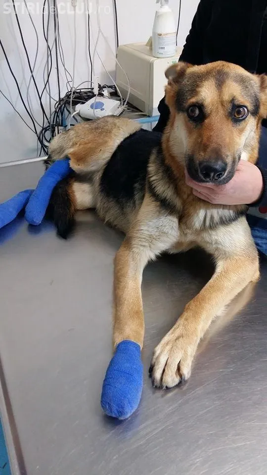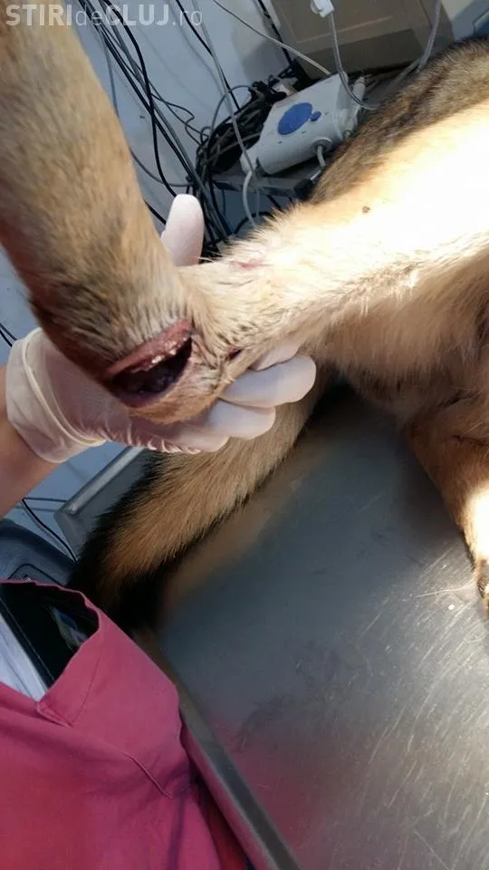O cățelușă a fost răpită din curtea unei firme din Apahida și maltratată în ultimul hal. Răuvoitorii i-au despicat picioarele cu un obiect tăios, sapă sau topor.