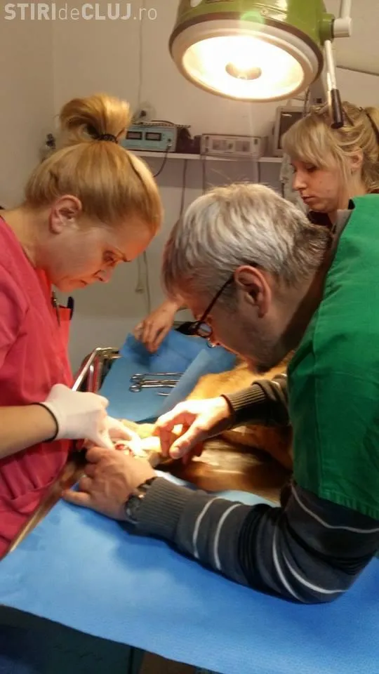 ”Caz grav de mutilare a unei cățelușe blânde din Apahida, furata din curtea unei firme și lovită cu toporul (sau sapa) peste cele 3 labute. Starea ei este grava, au fost făcute radiografii și operata aseară. Este internată la Clinica Veterinarius.