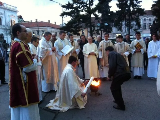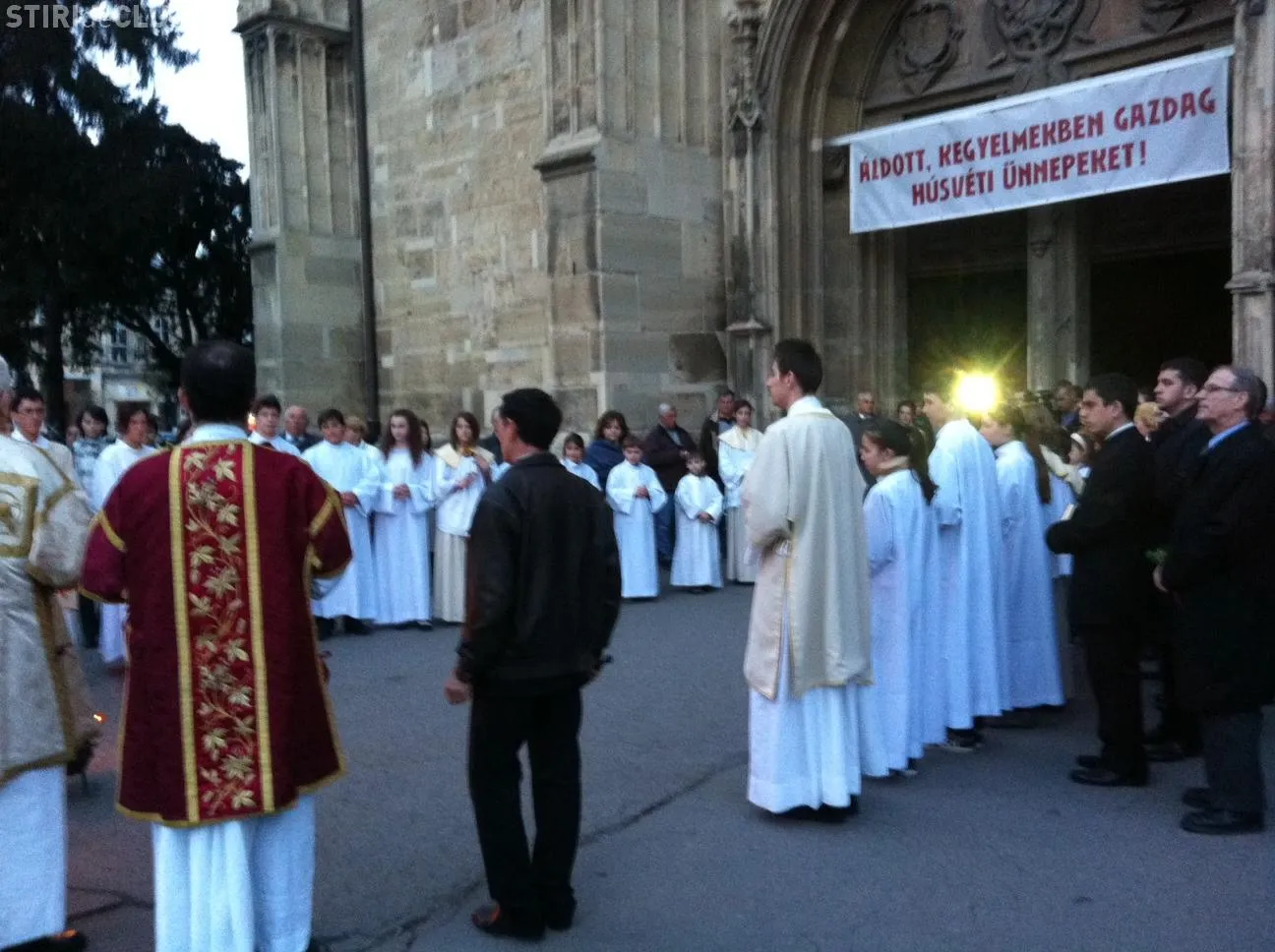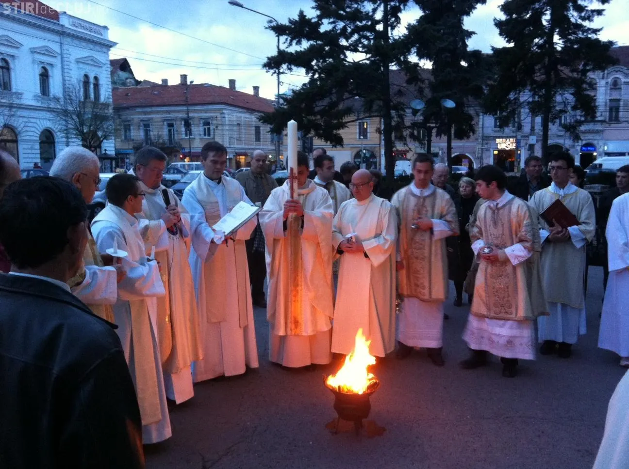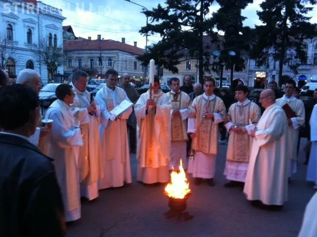Catolicii din Cluj sarbatoresc Invierea Domnului! La Biserica Sfantul Mihail a fost aprins un foc in fata locasului de cult FOTO