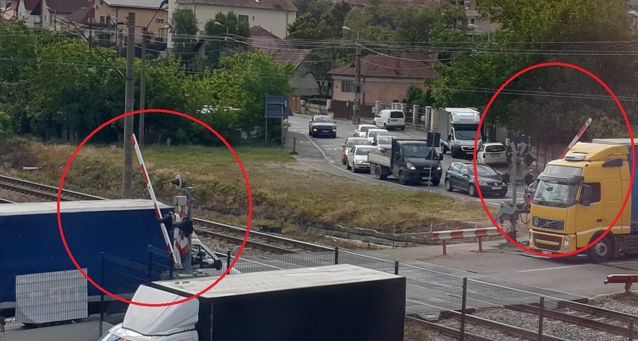 Doi șoferi au fost prinși în același timp de coborârea barierei de la trecerea la nivel cu calea ferată de la Tăietura Turcului.