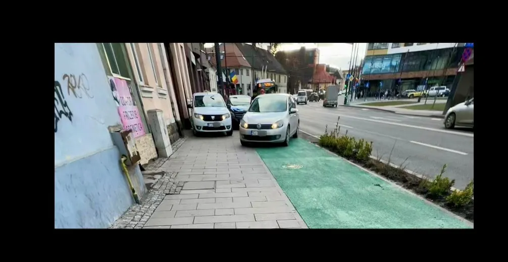 Pentru că nu aveau unde opri trei șoferi s-au cocoțat pe trotuar, nelăsând nimănui loc să treacă.