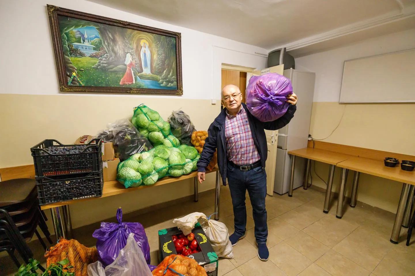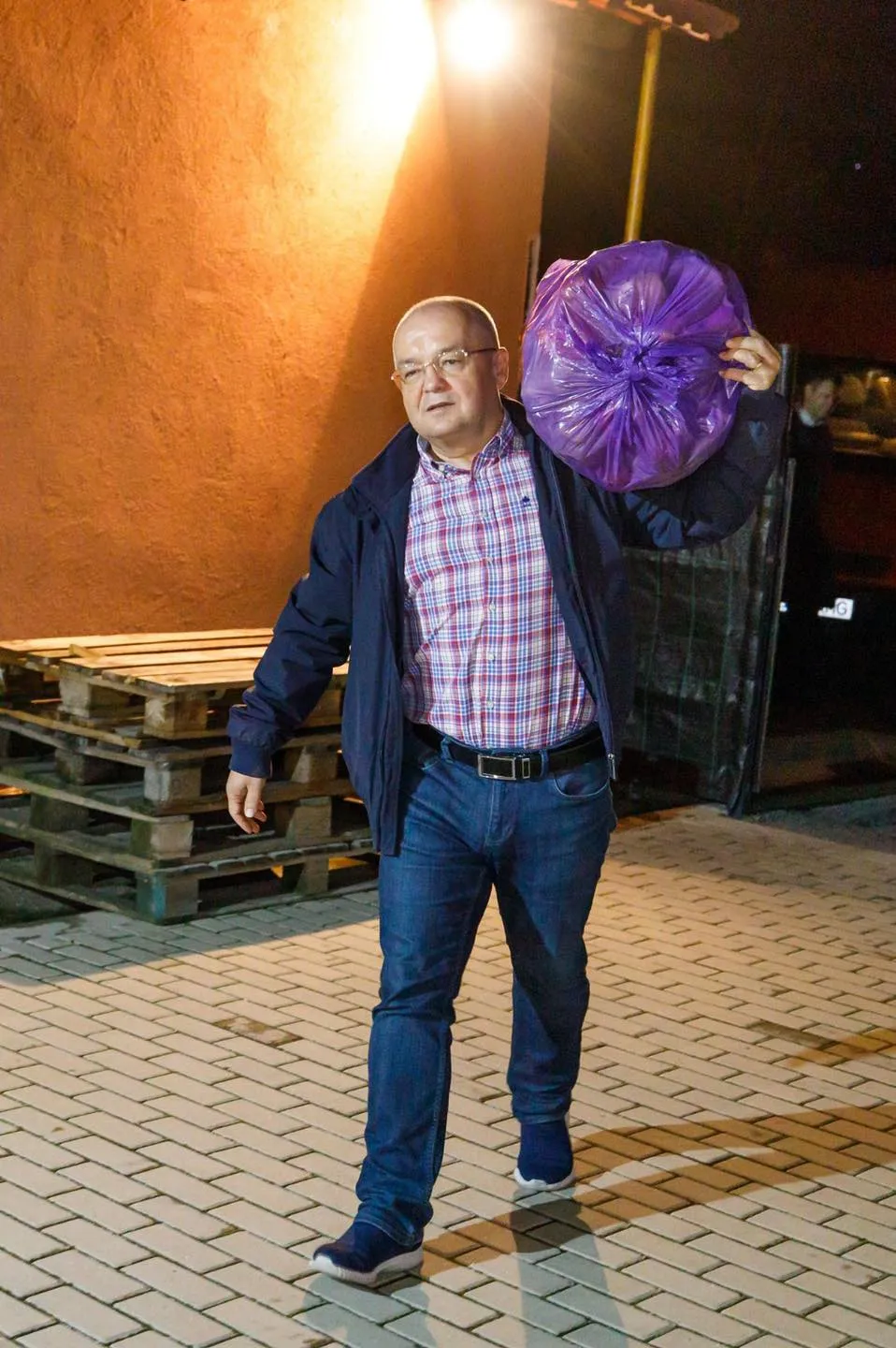 Ce fost premier mai face așa ceva? Boc a cărat în spinare saci cu legume pentru oamenii nevoiași - FOTO