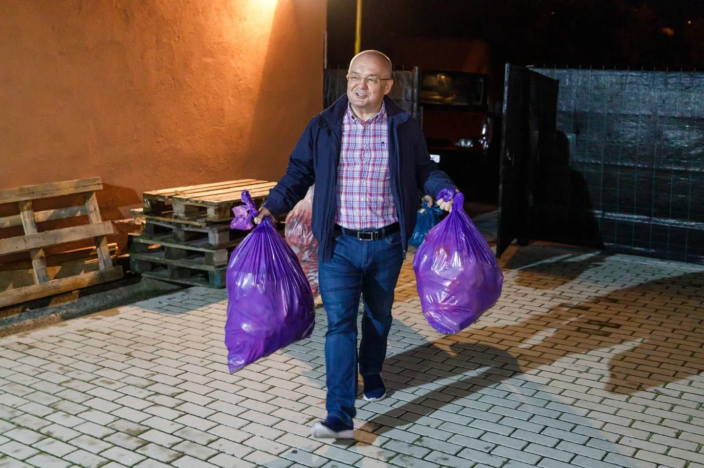 Fostul premier, actual primar al Clujului, Emil Boc, a cărat în spinare saci cu legume la bunicii aflați în nevoi de la centrele sociale ale Primăriei.