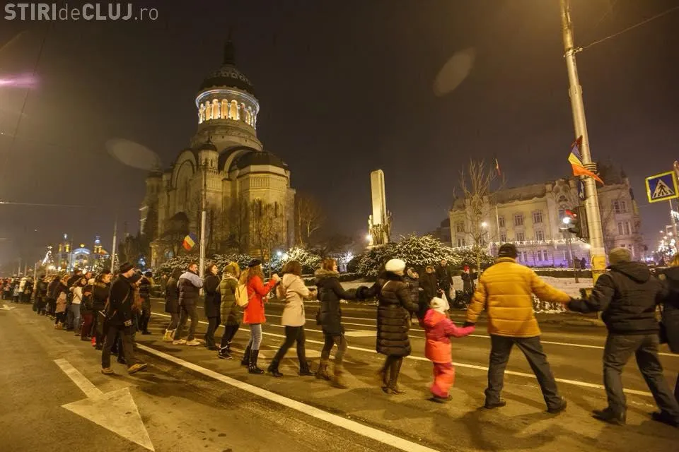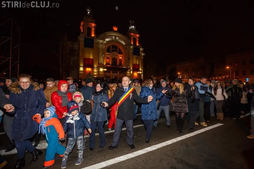 Cea mai mare Hora Unirii din istoria Clujului. Oamenii au dansat în jurul Catedralei - VIDEO