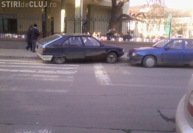Cea mai tare parcare din Dej! Pe trotuar si pe zebra, dar si pe contrasens FOTO