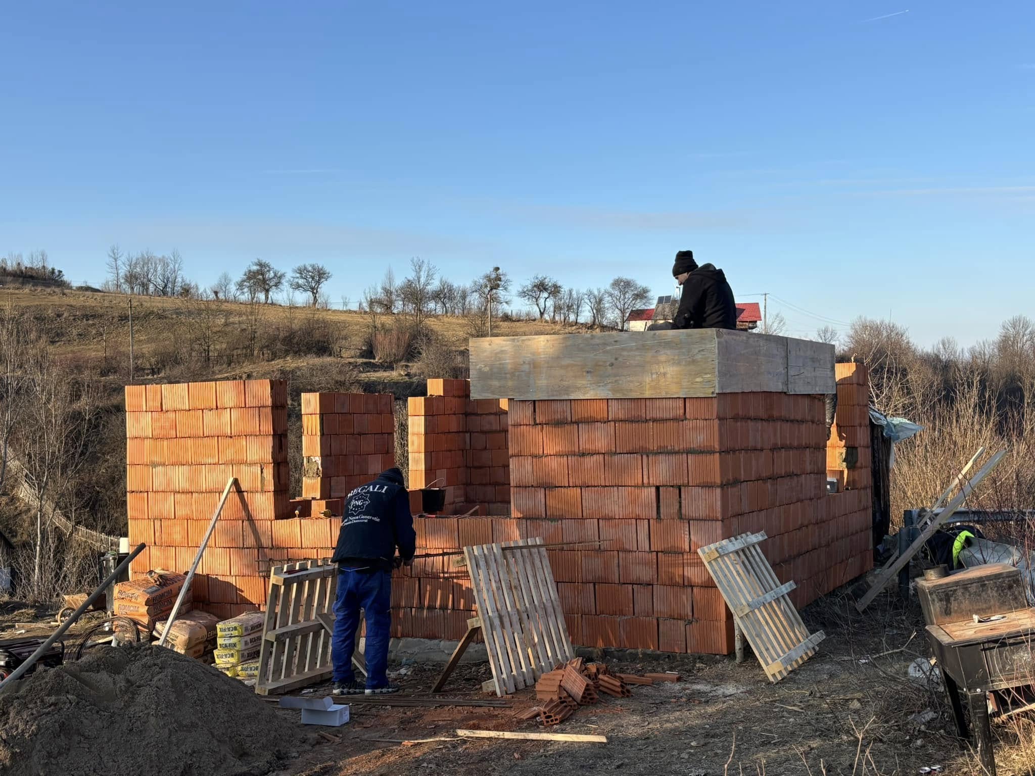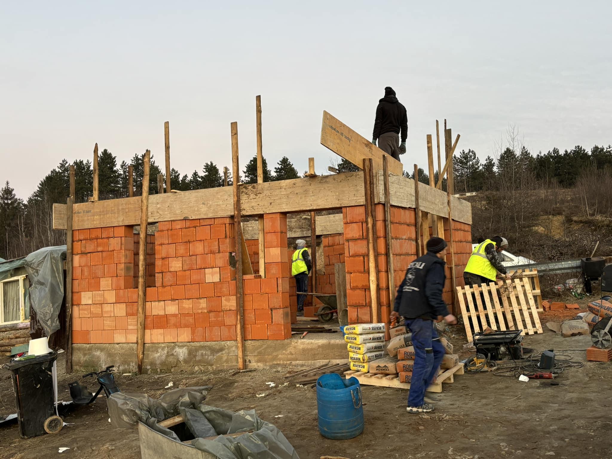 Familia cu 6 copii, alături de mama lor de 21 de ani, care locuiesc într-o cocioabă din comuna clujeană Călățele sunt aproape de a-și schimba viața. Noua lor căsuță se apropie de finalizare.