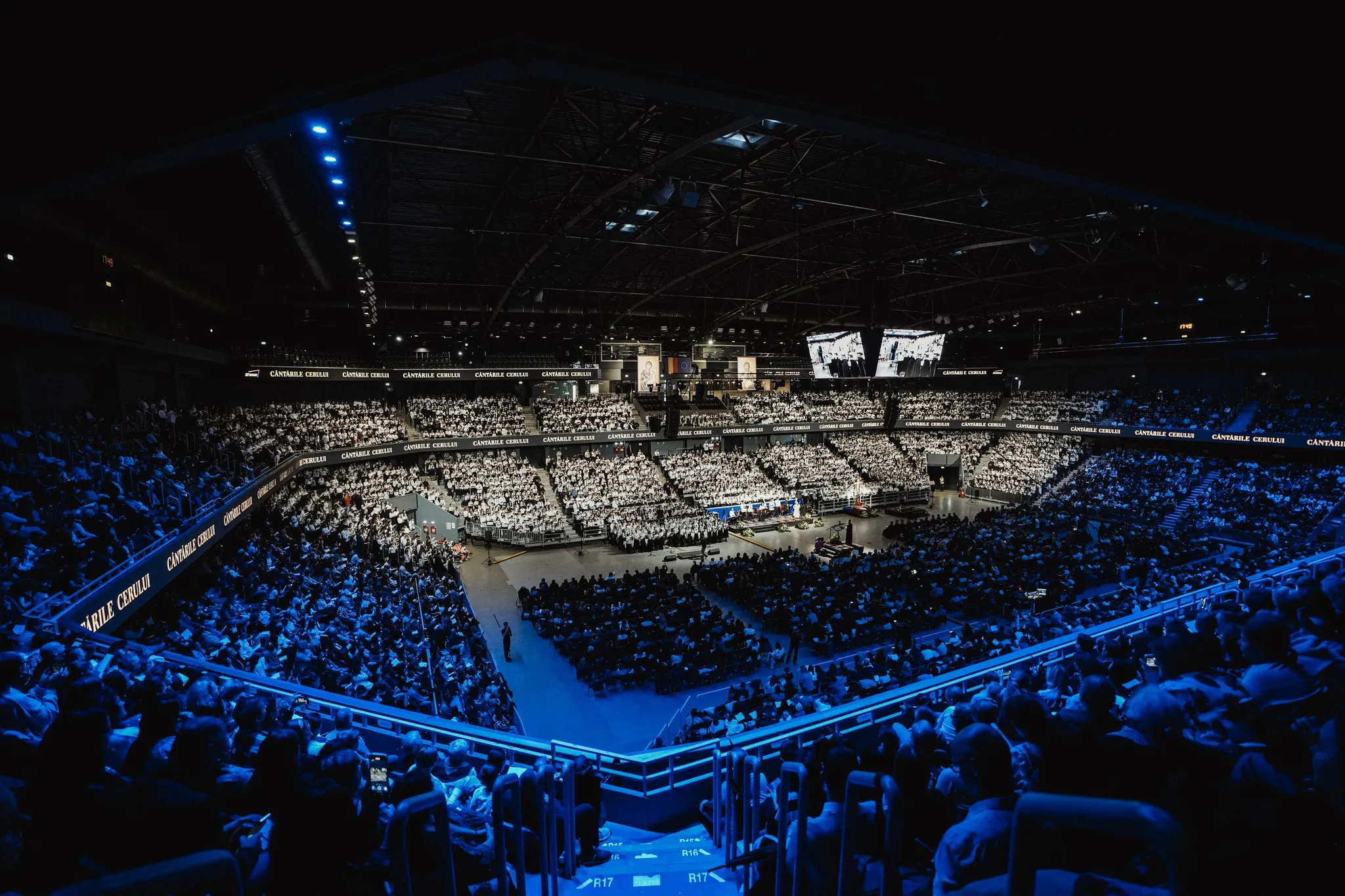Sala polivalentă BT Arena din Cluj s-a transformat ieri, pentru câteva ore, într-o mare de glasuri credincioase, când aproape 4000 de copii și tineri au urcat pe scenă pentru a forma cel mai mare cor ortodox organizat până acum în România, în cadrul evenimentului „Cântările Cerului” – ediția a III-a.