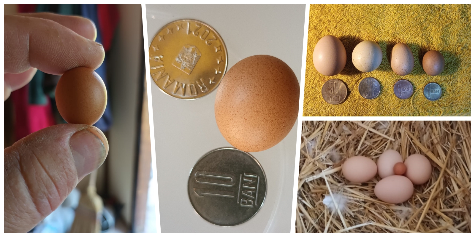 ”Cred ca dețin cele mai mici ouă de găină, cel puțin din județul nostru. Detin o mică fermă de 34 găini, majoritatea australorp. Am 4 ouă colectate în decurs de un an. Senzația colecției este un ou făcut zilele trecute, de numai 5,1 grame”, ne-a relatat Vasile Doroczi, din Dej, proprietarul ferme din Sanmarghita.