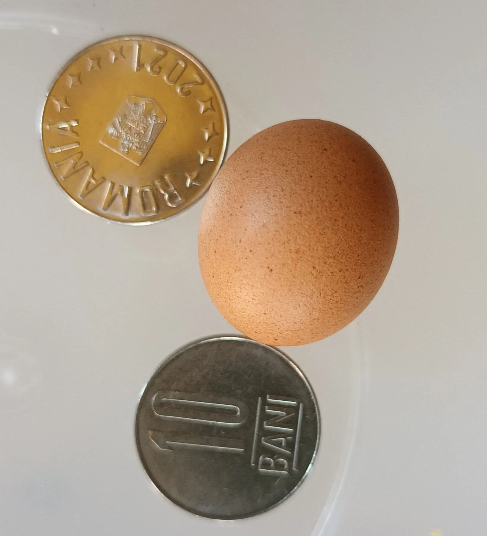 Ouă este atât de mic încât încape într-un dop de pet și este puțin mai mare în diametru decât o monedă de 10 bani.