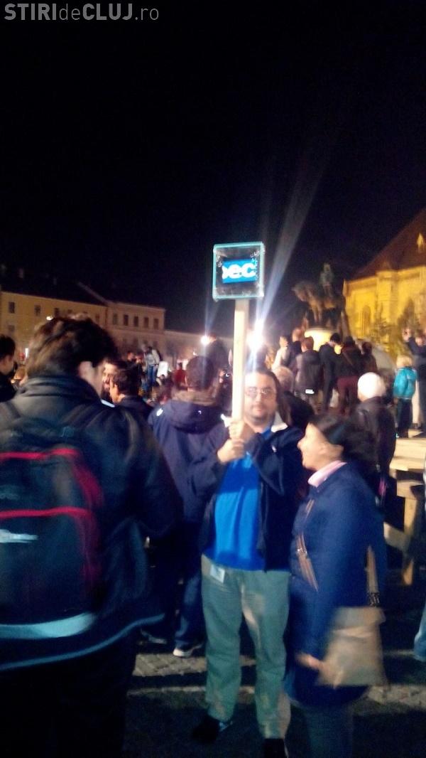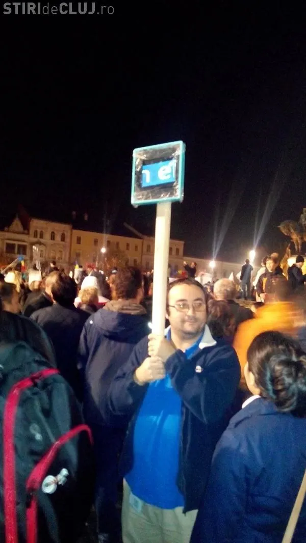 Unul dintre protestatarii de la Cluj poate lua premiul pentru cel mai ingenios manifestant.
