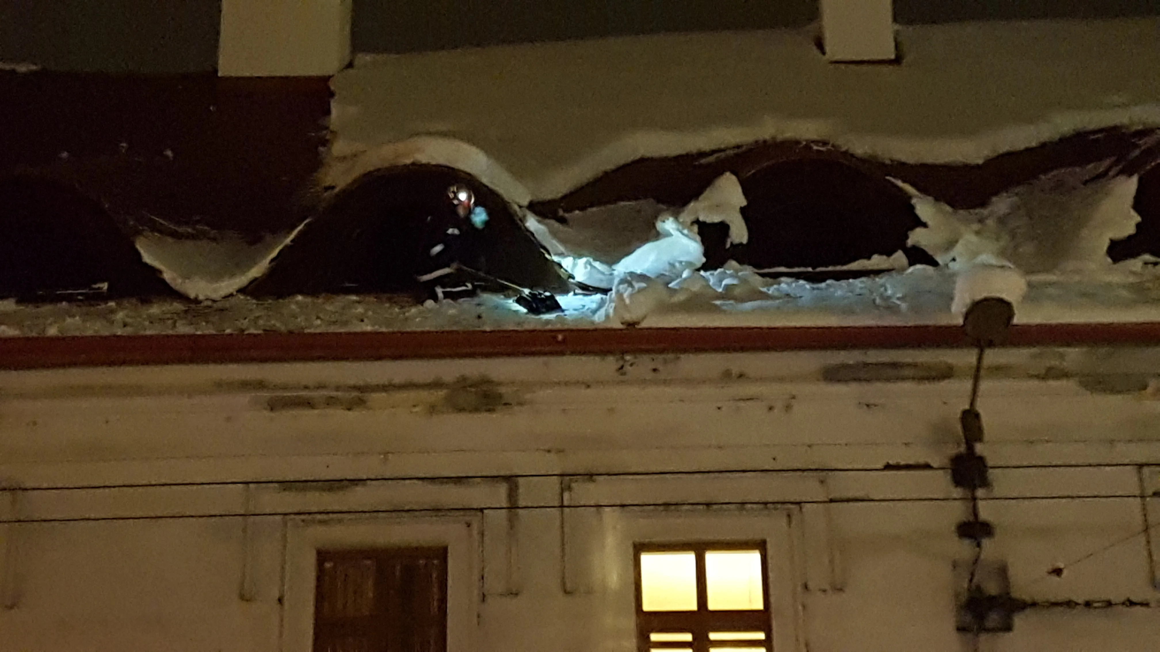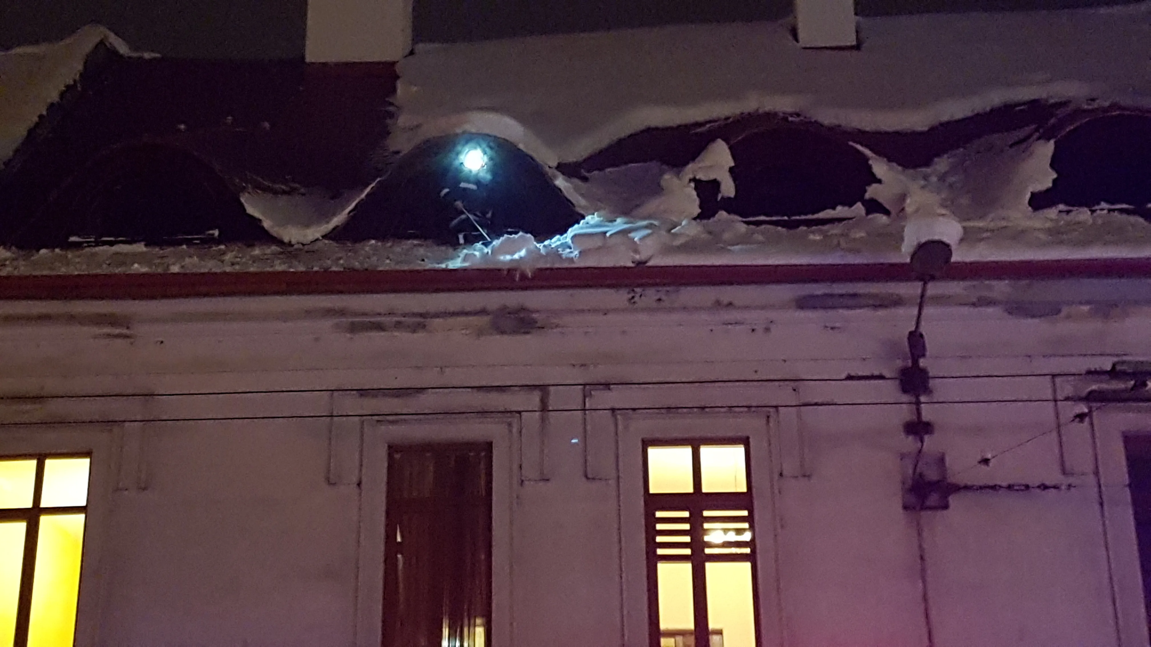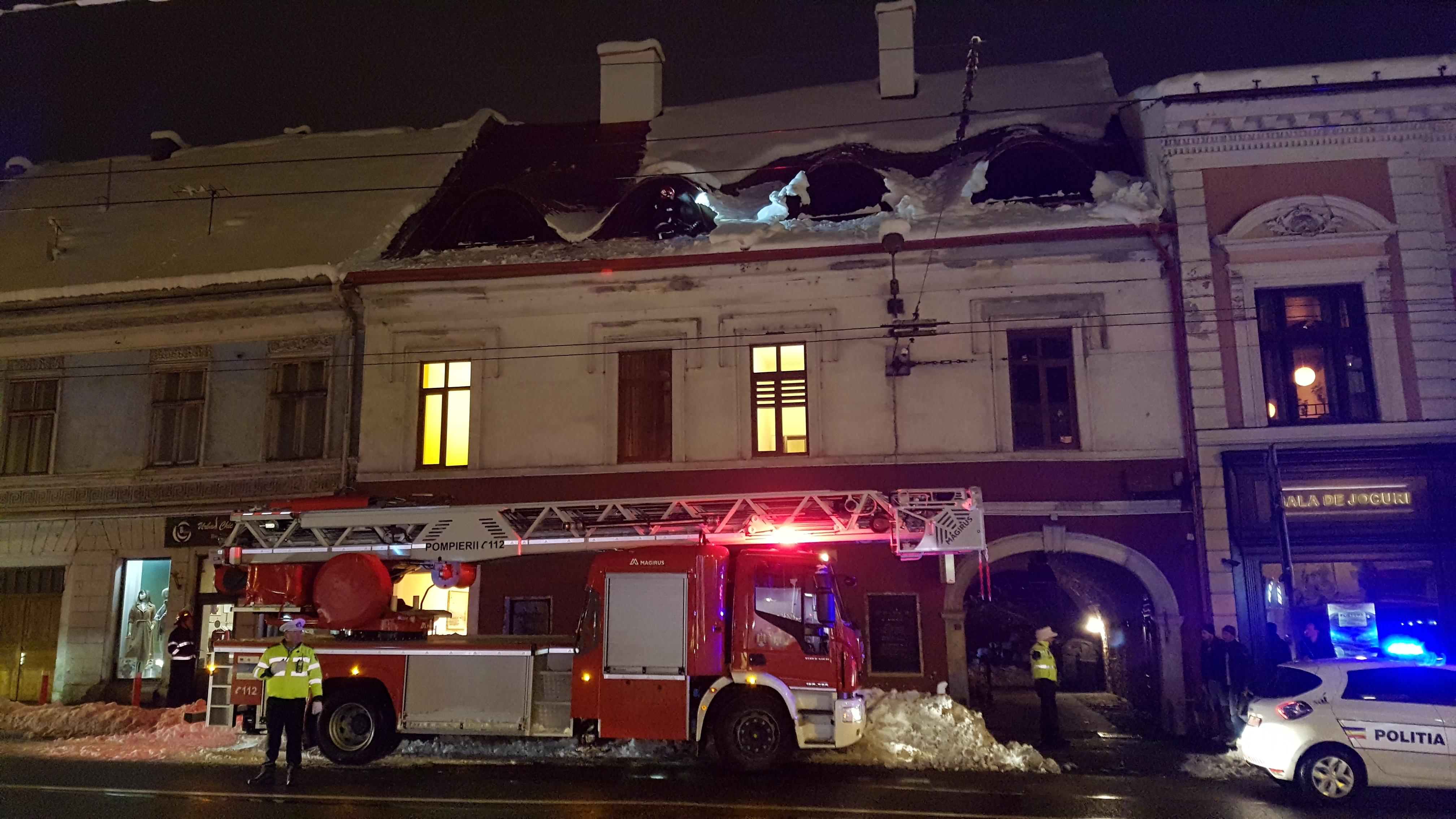 Pompierii clujeni lucrează non-stop pentru a îndepărta gheața și zăpada de pe clădirile din zona centrală.