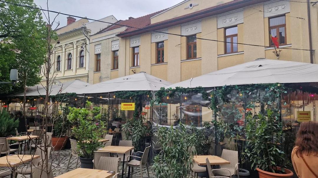 O clujeancă susține că terasa închisă cu plastic transparent și decorată cu palmieri arată precum un cort improvizat din India și nu este deloc potrivită cu peisajul istoric al zonei.