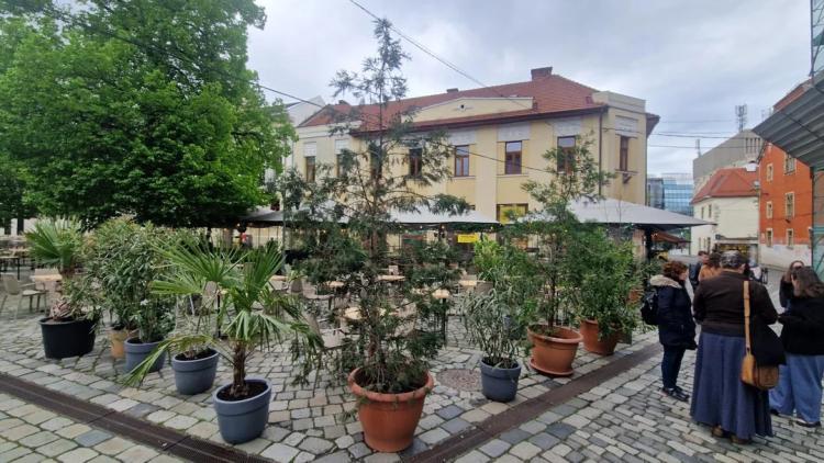 „Piața Muzeului e unul dintre locurile mele preferate din Cluj, dar arată destul de kitschos din cauza terasei închise cu plastic transparent, cu palmieri aruncați în față, fix lângă Biserica Franciscană.