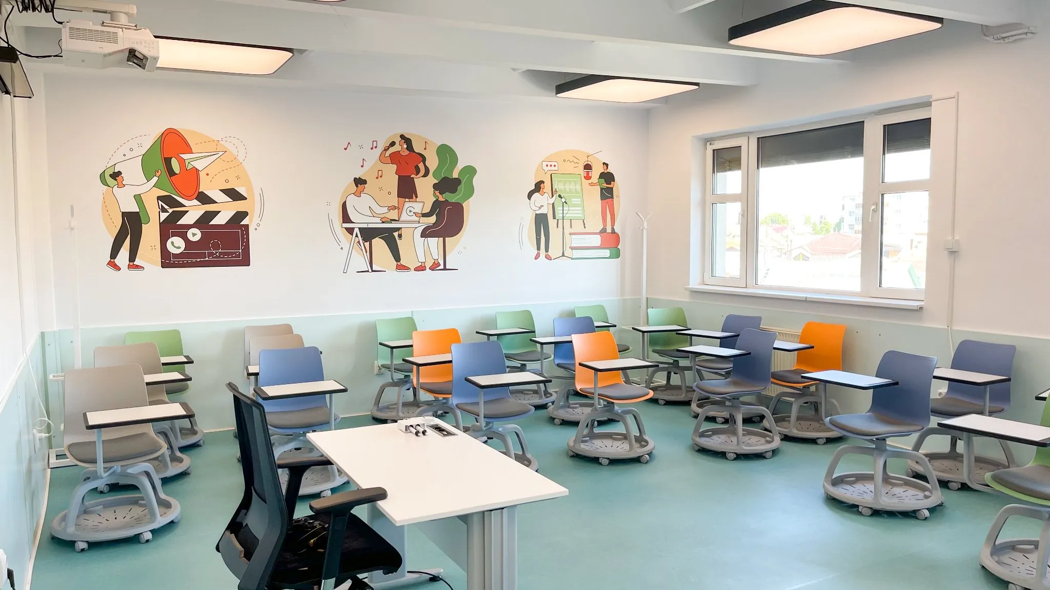”Suntem foarte fericiți să vă putem anunța finalizarea procesului de renovare și digitalizare a sălilor de curs, respectiv de seminar.