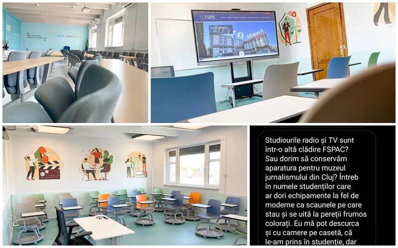 Conducerea Facultății de Ştiinţe Politice, Administrative şi ale Comunicării (FSPAC), din cadrul UBB Cluj, s-a lăudat cu scaunele frumos colorate, care au fost schimbate în sălile de curs, în timp ce studiourile TV și Radio au aparatură demnă de muzeu.