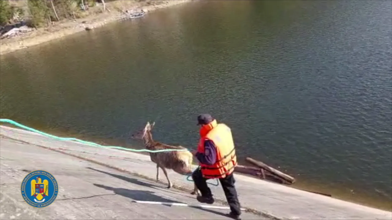 Cerb salvat la Beliș de pompierii clujeni, după o intervenție emoționantă - VIDEO