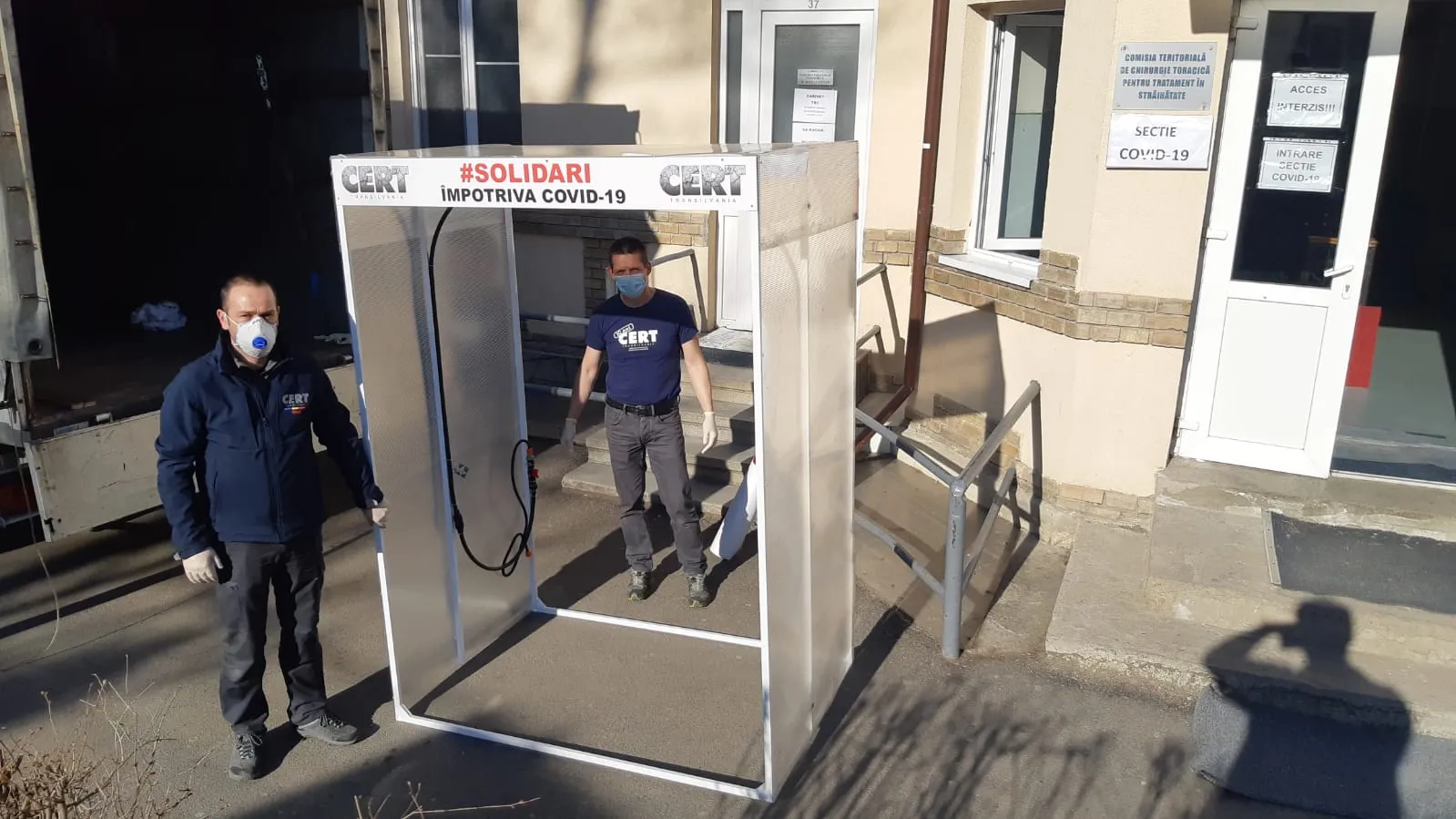 Aceste porți de decontaminare reduc considerabil riscul de contaminare la dezbrăcarea echipamentului de protecție pe de o parte și la pătrunderea într-o incintă, pe de altă parte și pot fi montate atât în interior, cât și în exterior”, anunță cei de la CERT Transilvania.
